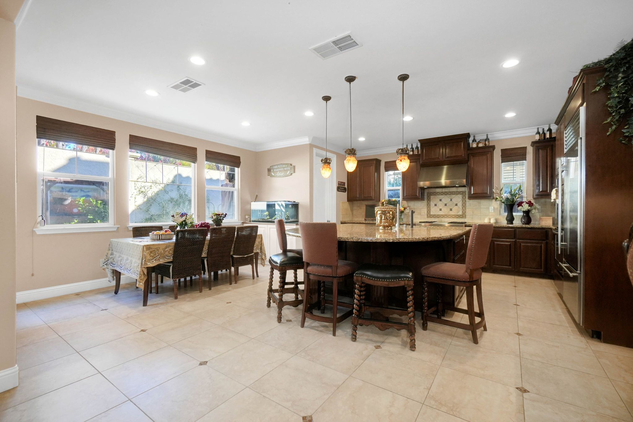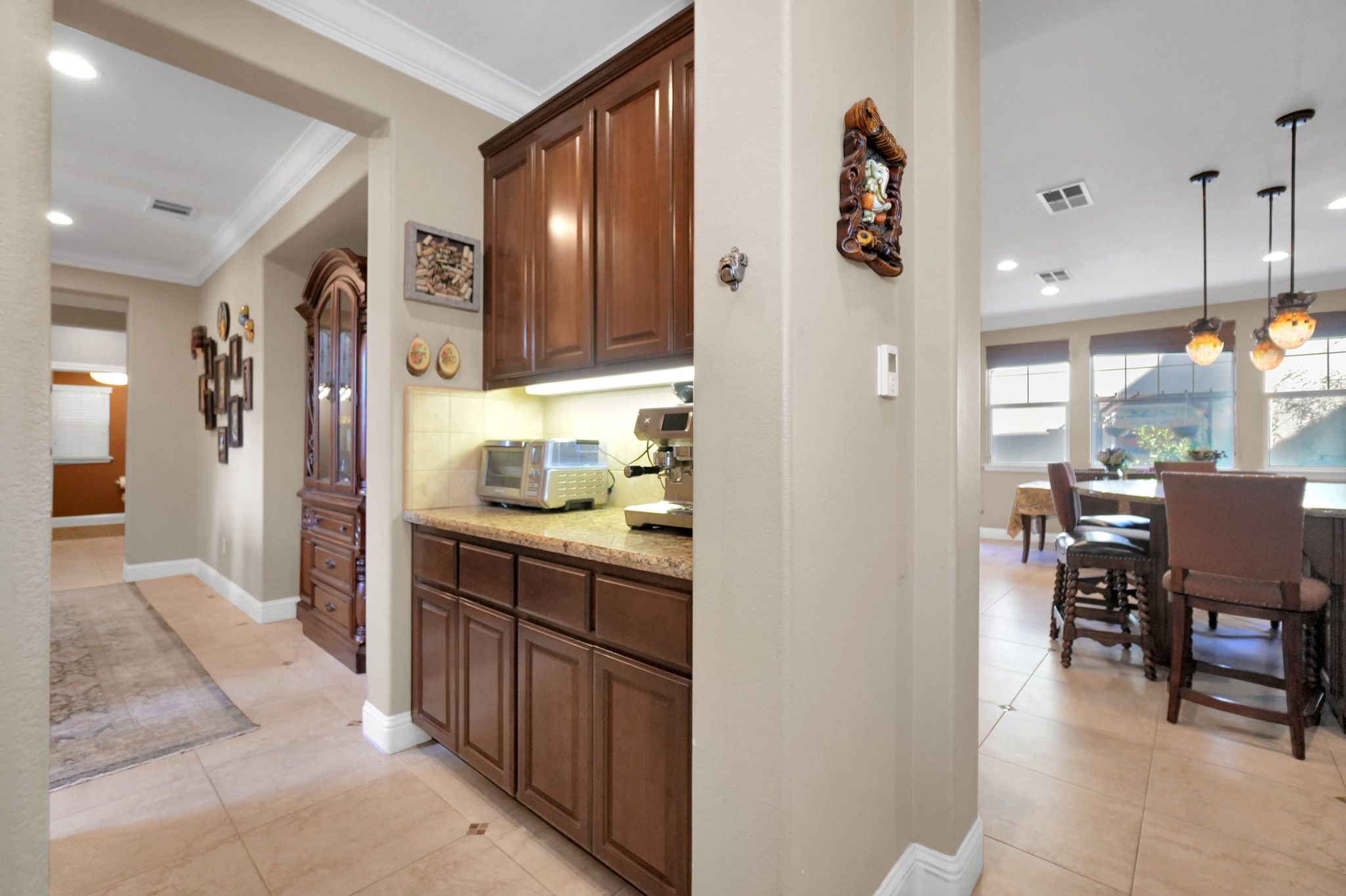 Welcome to Windemere - one of San Ramon’s premier neighborhoods - where luxury and thoughtful upgrades shine throughout. This beautifully enhanced home features heated tile floors downstairs, hardwood upstairs, crown molding, recessed lighting, and a whole-house water softener. The chef’s kitchen offers walnut cabinetry, Sub-Zero refrigeration, Wolf appliances, and KitchenAid double ovens. The family room includes a custom built-in entertainment center, while the primary suite features a walk-in closet and upgraded jetted tub. Enjoy a private backyard with a pergola, built-in BBQ, and dual leased solar systems that are fully paid. The garage is upgraded with custom flooring, built-in storage, and a Tesla charger. Close to top-rated schools, parks, and scenic trails, this refined Windemere home offers elevated living at its best. Don't miss this opportunity to own a home in one of San Ramon's highly desired neighborhoods.